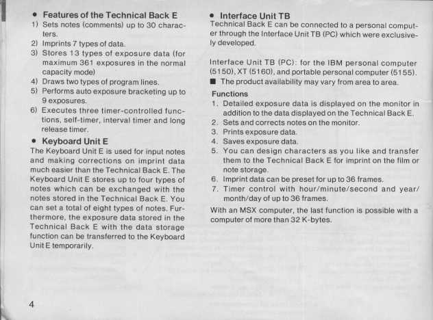 Technical Back E with an IBM compatible computer. It downloads exposure data and